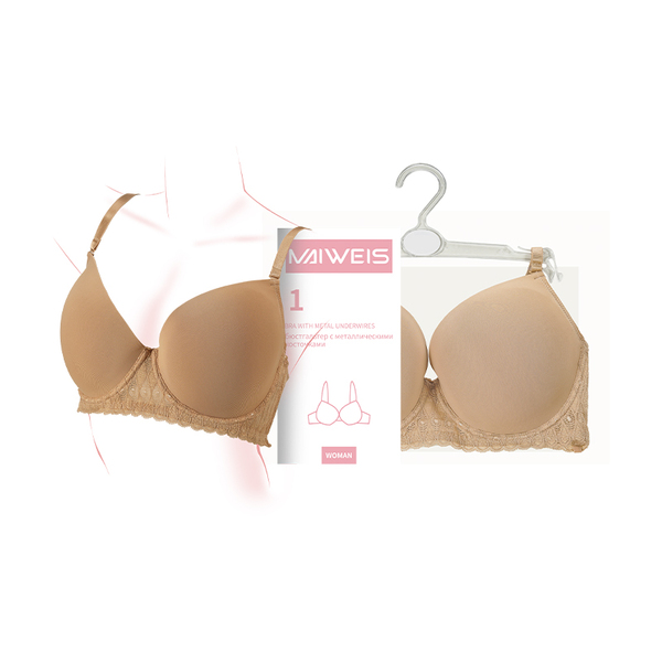 (0,5pv)Meiweishi женский кружевной бюстгальтер на косточках телесного цвета 85DD/английская и русская версия